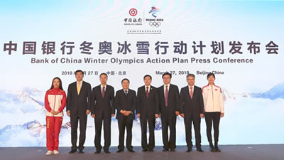 2018年3月27日,中國銀行在北京發布“冬奧冰雪行動計劃”。計劃以“一起上冰雪”為主題,提出從現在至2024年,中國銀行將圍繞共筑、共享、共贏三大主線,推出冬奧推廣和服務、大眾冰雪運動和冰雪產業發展三大具體計劃,為冰雪運動推廣與冰雪產業發展提供300億元資金支持,帶動全國3000萬個家庭、1億人口參與冰雪運動。