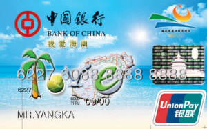 2008年4月8日,為紀念海南建省辦經濟特區20周年,海南歷史上第一張地域認同卡——中銀“我愛海南卡”在海南省隆重發行。作為符合國際標準的貸記卡,我愛海南卡具備中國銀行為您提供的眾多基本功能與服務。
