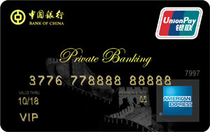 為滿足中國銀行高端客戶的用卡需求,填補我行頂級信用卡的空白,中國銀行推出了為私人銀行客戶量身打造的頂級信用卡--長城美國運通卡。該卡由中國銀行與全球高端信用卡品牌美國運通合作發(fā)行,是目前長城環(huán)球通平臺上最高端的信用卡產品。作為私人銀行客戶的重要身份標識,持有這張卡片,即可在中國銀行全球網點享受私人銀行客戶服務。此款產品充分發(fā)揮我行全球服務的比較優(yōu)勢,集合了長城環(huán)球通信用卡的所有功能優(yōu)勢,并包含了眾多尊享服務,同時借助美國運通的高端品牌影響力及其海外完備的增值服務體系,為私人銀行客戶提供頂級的金融服務禮遇,“全球榮耀、非同凡享”。