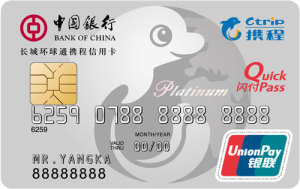 中國銀行攜手攜程旅游網,全新推出長城環球通攜程信用卡,為您提供更多產品選擇,更安全支付體驗。您既可享受透支免息、存款有息、分期付款等中國銀行信用卡基本功能與服務,還可享受攜程會員自動申請、消費積分自動兌換攜程禮品卡、攜程網預訂返禮等多重專屬權益,是您不容錯過的商務旅行好伴侶!