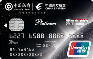 中銀東航信用卡是中國銀行、中國東方航空股份有限公司強強攜手推出的一款商旅聯名信用卡產品。該產品具有白金卡及金卡兩種產品等級,采用高科技芯片技術,使您交易更安全,更有積分自動兌換等特色權益,讓您樂享其程。