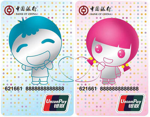 “長城鏡面情侶借記卡”是中國銀行長城借記卡系列產(chǎn)品之一,主要面向年輕情侶客戶群體。“情侶卡”采取新穎的鏡面、對卡設計,分為男卡、女卡,兩張卡片可組合出的心型線條將兩個卡通人物聯(lián)系在一起,展示出情侶的特色主題。