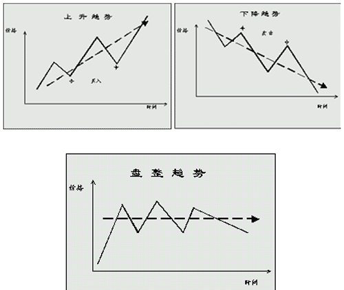 趨勢(shì)反映的是市場(chǎng)匯價(jià)變動(dòng)的大致方向。上升趨勢(shì)的圖形反映出匯價(jià)不斷創(chuàng)高,在升勢(shì)中的短暫回落,往往成為買(mǎi)盤(pán)入市的良機(jī),若升勢(shì)持續(xù)時(shí)間較長(zhǎng)而且一浪高過(guò)一浪,就成為“牛市”。匯市有強(qiáng)烈看漲情緒,稱(chēng)為“牛市正旺”。下跌趨勢(shì)的圖形反映匯價(jià)不斷推低,跌勢(shì)中的短暫回升,往往成為賣(mài)盤(pán)入市的良機(jī)。跌勢(shì)持續(xù)時(shí)間長(zhǎng)而且一浪低過(guò)一浪,就成為“熊市”。匯價(jià)強(qiáng)烈看跌時(shí),稱(chēng)為“熊市籠罩”。在經(jīng)濟(jì)數(shù)據(jù)或重要新聞公布前和周末,因?yàn)橥顿Y者擔(dān)心匯市突變和周末假期,多數(shù)平倉(cāng)觀(guān)望,市場(chǎng)交投淡靜,匯價(jià)波動(dòng)極小。因?yàn)槿狈M(jìn)一步方向,匯價(jià)在較長(zhǎng)一段時(shí)間在一定幅度內(nèi)徘徊,稱(chēng)為“牛皮市”。在這種情況下,等待觀(guān)望通常是最明智的。當(dāng)匯價(jià)沖破水平趨勢(shì)的上限或下限,后市均可能勁升或勁跌。