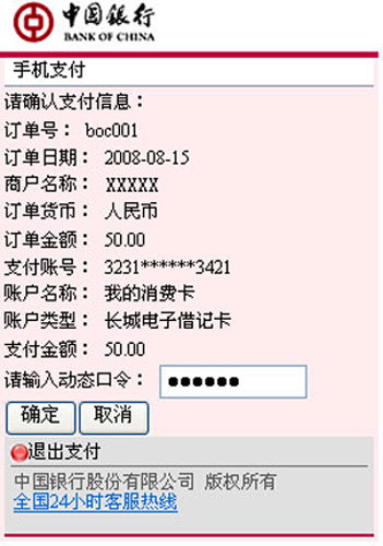 確認(rèn)支付信息無(wú)誤后,輸入動(dòng)態(tài)口令,點(diǎn)擊“確定”(圖15)。