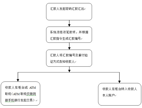 個人密碼匯款是我行依托金融科技創新而推出的全新匯款方式,是中銀易匯品牌下的明星產品。客戶持本人借記卡/存折通過我行柜臺、網銀、手機銀行、中銀自助通(憑卡)將一筆款項匯給指定收款人,設定匯款解付驗證方式(包括憑“密碼”、憑“手機驗證碼”或憑“密碼+手機驗證碼”),通過自行將匯款編號(銀行系統生成)和指定驗證方式告知收款人,收款人即可憑匯款編號和指定驗證方式至我行辦理收款。