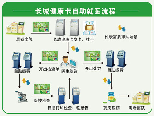 客戶持長(zhǎng)城健康卡、居民健康卡、金融社保卡、醫(yī)院聯(lián)名卡、醫(yī)院診療卡等在中國(guó)銀行數(shù)百家合作醫(yī)院,通過自助發(fā)卡機(jī)、掛號(hào)機(jī)、繳費(fèi)機(jī)、打印機(jī)等多種自助設(shè)備,快速辦理發(fā)卡、掛號(hào)、繳費(fèi)、醫(yī)保結(jié)算、打印就診單據(jù)等操作,享受一站式就醫(yī)服務(wù)。各醫(yī)院自助就醫(yī)流程略有差別,具體按照醫(yī)院及自助設(shè)備指示進(jìn)行操作。