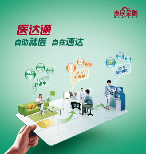“醫(yī)達(dá)通”是中國(guó)銀行“惠民金融”服務(wù)體系在醫(yī)療衛(wèi)生領(lǐng)域推出的“惠健康”個(gè)人客戶服務(wù)方案。為解決百姓看病掛號(hào)難、排隊(duì)繳費(fèi)難等問題,中國(guó)銀行與全國(guó)數(shù)百家知名醫(yī)院合作,發(fā)行長(zhǎng)城健康卡、居民健康卡等產(chǎn)品,為客戶提供“預(yù)約掛號(hào)”、“自助就診”、“健康增值服務(wù)”等就醫(yī)保健解決方案。
